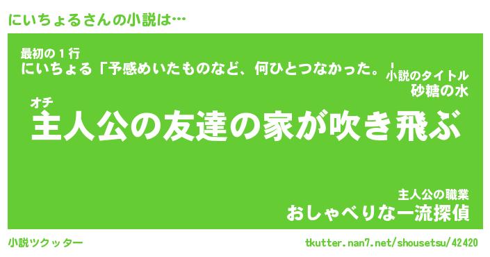 | 男性向けラノベタイトル風あだ名 | 『にいちょるの憂鬱』 |