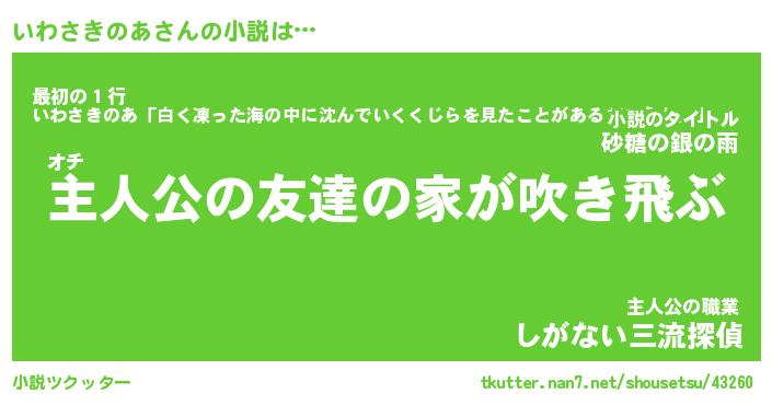 | 男性向けラノベタイトル風あだ名 | 『いわさきのあの憂鬱』 |