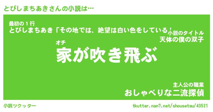 | 男性向けラノベタイトル風あだ名 | 『とびしまちあきの憂鬱』 |