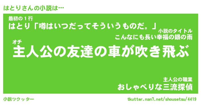 | 魚たちの銀の雨WW …「ケモノ」 | 10月27日 05:47 |