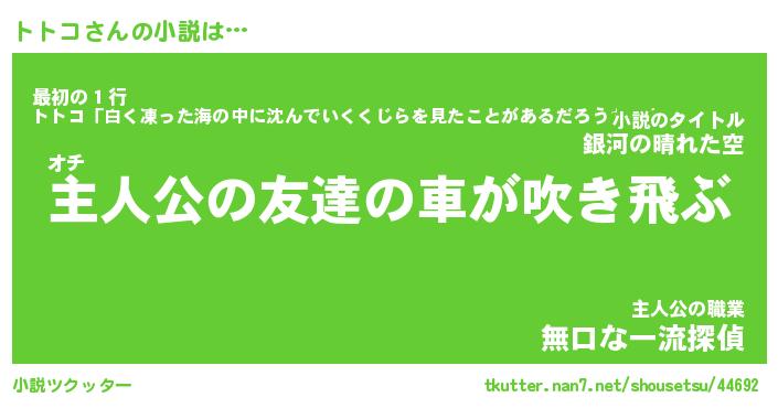 | 魚たちの銀の雨WW …「ケモノ」 | 10月27日 05:47 |