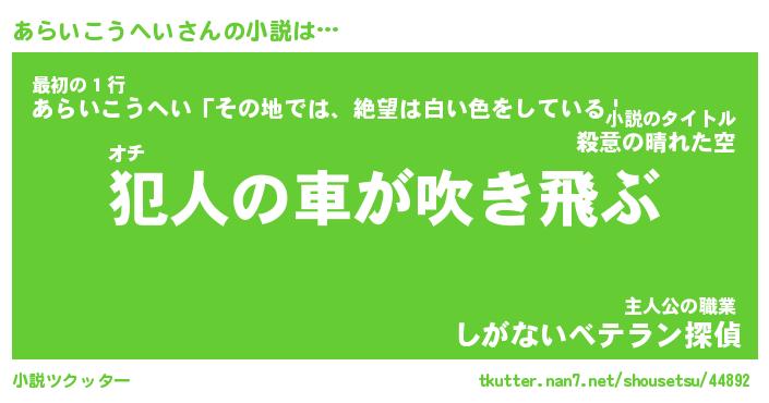 | 伝説のあだ名 | 『封印されしスナイパーあらいこうへい』 |