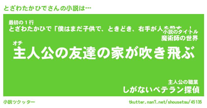 | 男性向けラノベタイトル風あだ名 | 『とざわたかひでの憂鬱』 |