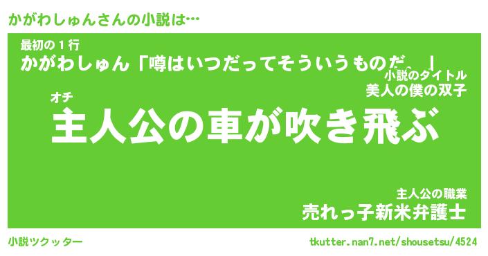 | 男性向けラノベタイトル風あだ名 | 『かがわしゅんの憂鬱』 |