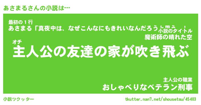 | 男性向けラノベタイトル風あだ名 | 『あさまるの憂鬱』 |