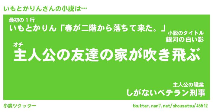 | 男性向けラノベタイトル風あだ名 | 『イモトカリンアートオンライン』 |