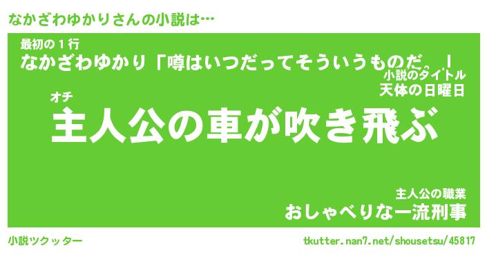 | 男性向けラノベタイトル風あだ名 | 『なかざわゆかりの憂鬱』 |