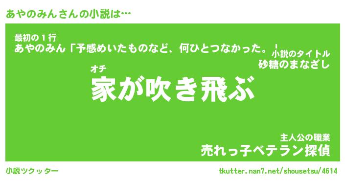 | 男性向けラノベタイトル風あだ名 | 『あやのみんの憂鬱』 |