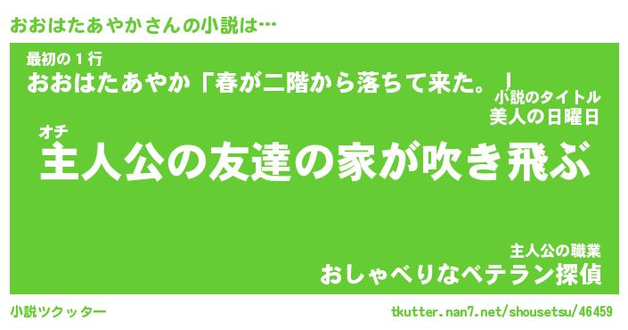 | 男性向けラノベタイトル風あだ名 | 『おおはたあやかの憂鬱』 |