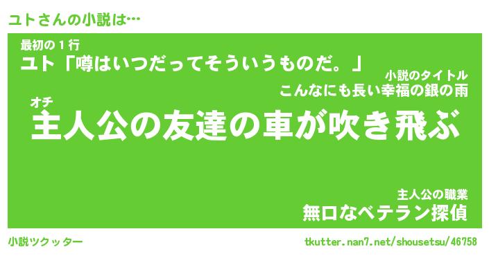 | 魚たちの銀の雨WW …「ケモノ」 | 10月27日 05:47 |