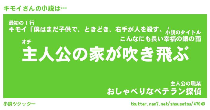 | 魚たちの銀の雨WW …「ケモノ」 | 10月27日 05:47 |