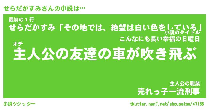 | 胡散臭い通販商品みたいなあだ名 | 『億万長者になれるブレスレット…その名も「せらだかすみ」』 |