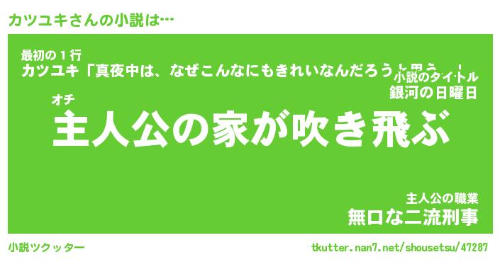 | 男性向けラノベタイトル風あだ名 | 『カツユキの憂鬱』 |
