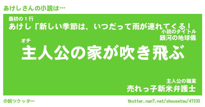 | 男性向けラノベタイトル風あだ名 | 『あけしの憂鬱』 |