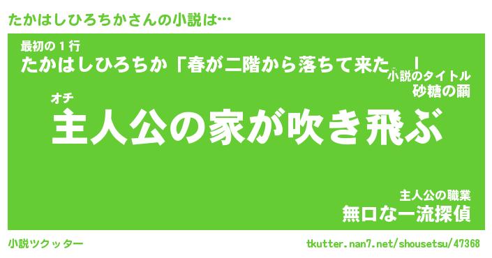 | 胡散臭い通販商品みたいなあだ名 | 『必ず成功するブレスレット…その名も「たかはしひろちか」』 |