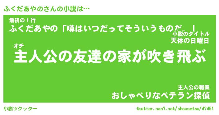 | 胡散臭い通販商品みたいなあだ名 | 『モテモテ間違いなし霊験あらたかなお札…その名も「ふくだあやの」』 |