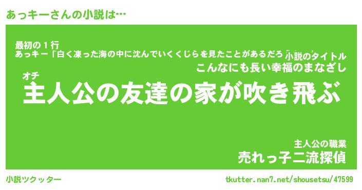 | 男性向けラノベタイトル風あだ名 | 『あっキーの憂鬱』 |