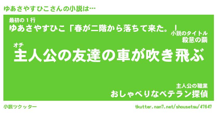 | 胡散臭い通販商品みたいなあだ名 | 『億万長者になれるブレスレット…その名も「ゆあさやすひこ」』 |