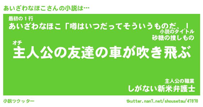 | 胡散臭い通販商品みたいなあだ名 | 『モテモテ間違いなし水晶球…その名も「あいざわなほこ」』 |