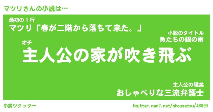 | 男性向けラノベタイトル風あだ名 | 『マツリの憂鬱』 |