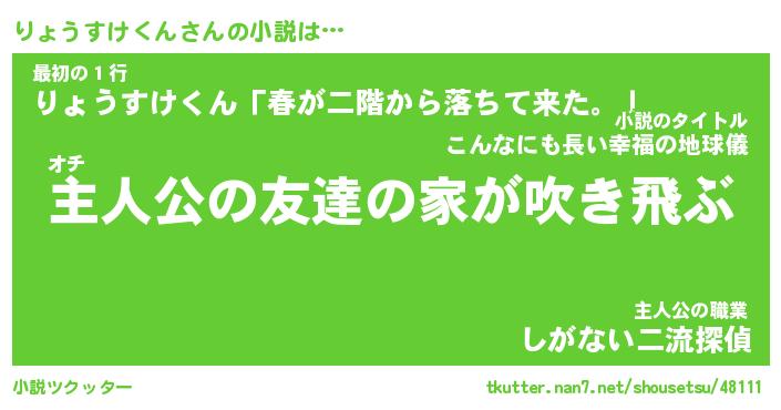 | 胡散臭い通販商品みたいなあだ名 | 『モテモテ間違いなし霊験あらたかなお札…その名も「りょうすけくん」』 |