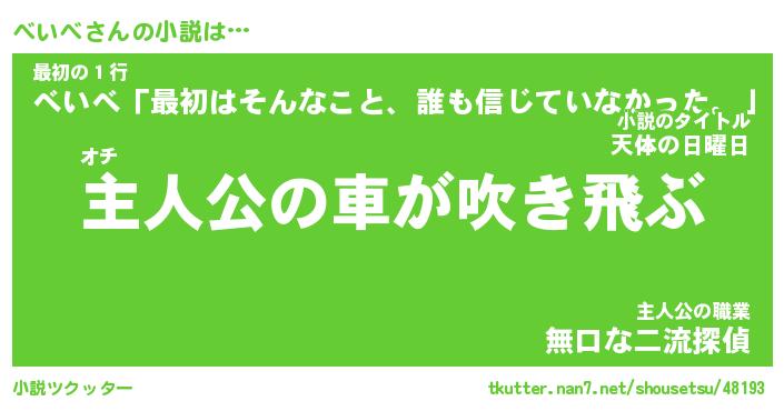 | 男性向けラノベタイトル風あだ名 | 『べいべの憂鬱』 |