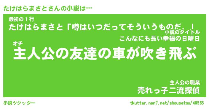| 胡散臭い通販商品みたいなあだ名 | 『億万長者になれるブレスレット…その名も「たけはらまさと」』 |