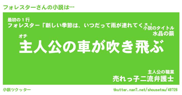 | 男性向けラノベタイトル風あだ名 | 『フォレスターの憂鬱』 |