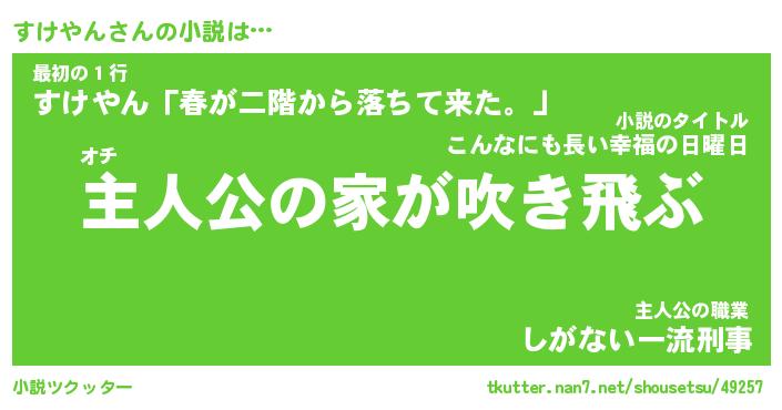 | 男性向けラノベタイトル風あだ名 | 『すけやんの憂鬱』 |