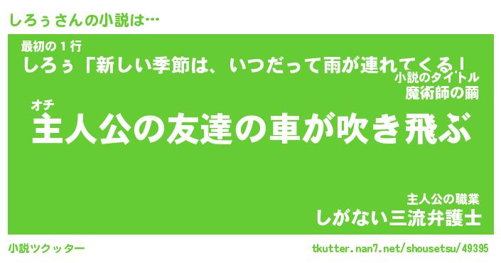 | 魚たちの銀の雨WW …「ケモノ」 | 10月27日 05:47 |