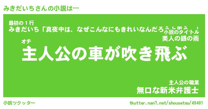 | 男性向けラノベタイトル風あだ名 | 『みきだいちの憂鬱』 |