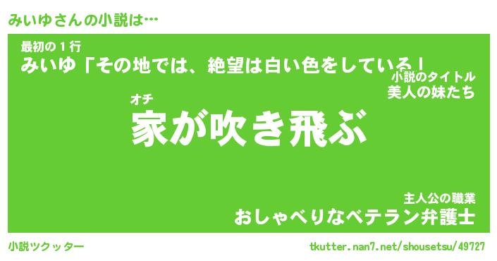 | 男性向けラノベタイトル風あだ名 | 『みいゆの憂鬱』 |