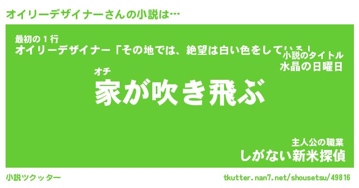 | 伝説のあだ名 | 『伝説のスナイパーオイリーデザイナー』 |