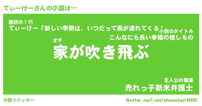 | 男性向けラノベタイトル風あだ名 | 『てぃーけーの憂鬱』 |