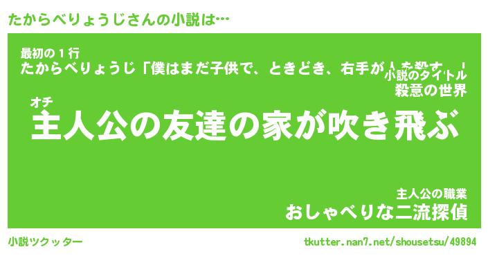 | 男性向けラノベタイトル風あだ名 | 『たからべりょうじの憂鬱』 |