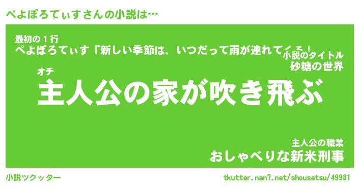| 男性向けラノベタイトル風あだ名 | 『ぺよぽろてぃすの憂鬱』 |