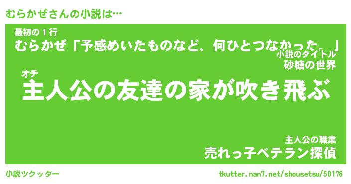 | 男性向けラノベタイトル風あだ名 | 『ムラカゼアートオンライン』 |