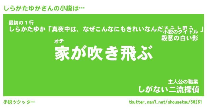 | 男性向けラノベタイトル風あだ名 | 『しらかたゆかの憂鬱』 |