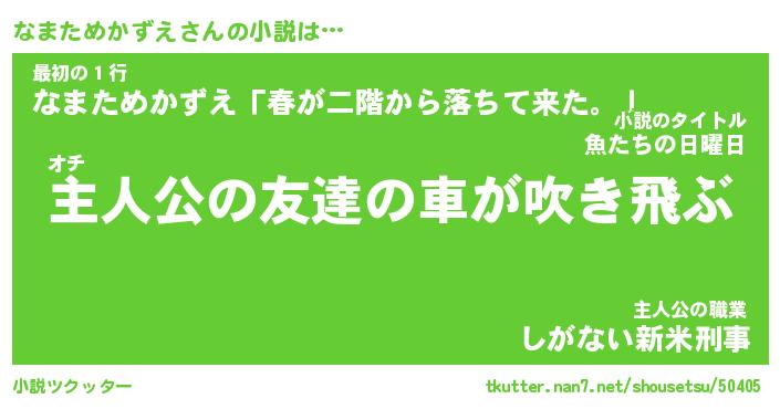 | 肩書あだ名 | 『なまためかずえ店長』 |