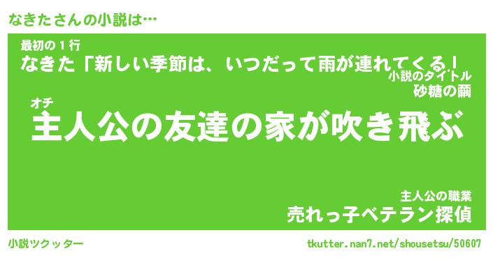 | 男性向けラノベタイトル風あだ名 | 『なきたの憂鬱』 |
