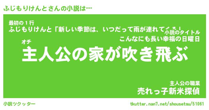 | 男性向けラノベタイトル風あだ名 | 『ふじもりけんとの憂鬱』 |