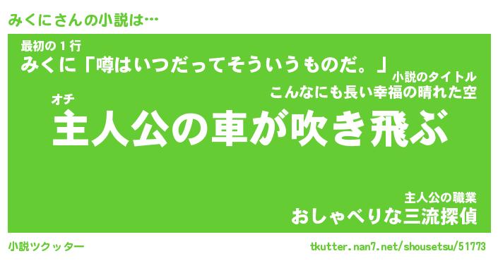 | 男性向けラノベタイトル風あだ名 | 『みくにの憂鬱』 |