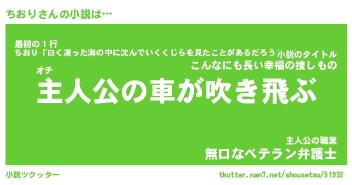 | 男性向けラノベタイトル風あだ名 | 『ちおりの憂鬱』 |