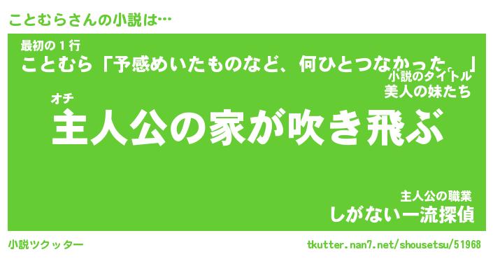 | 男性向けラノベタイトル風あだ名 | 『ことむらの憂鬱』 |