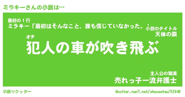 | 胡散臭い通販商品みたいなあだ名 | 『億万長者になれるブレスレット…その名も「ミラキー」』 |