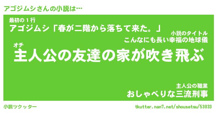 | 料理風あだ名 | 『節約★アゴジムシと油揚げの玉子丼』 |