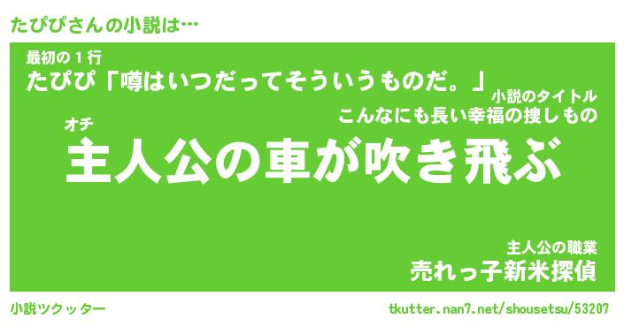 | 男性向けラノベタイトル風あだ名 | 『たぴぴの憂鬱』 |