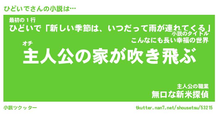 | 男性向けラノベタイトル風あだ名 | 『ひどいでの憂鬱』 |