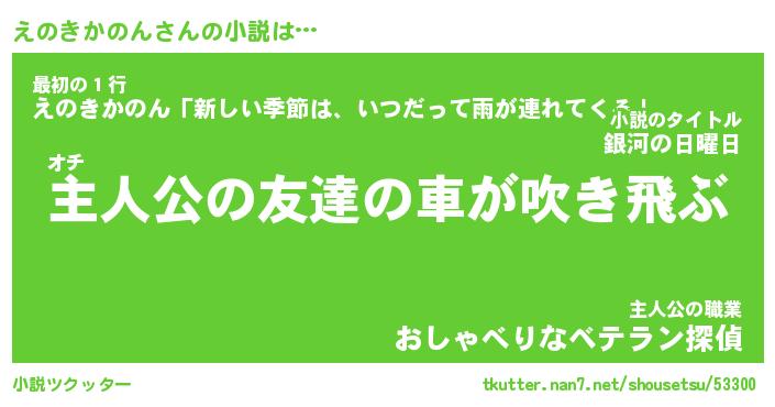 | 魚たちの銀の雨WW …「ケモノ」 | 10月27日 05:47 |