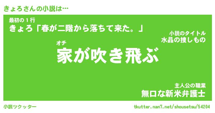 | 男性向けラノベタイトル風あだ名 | 『きょろの憂鬱』 |
